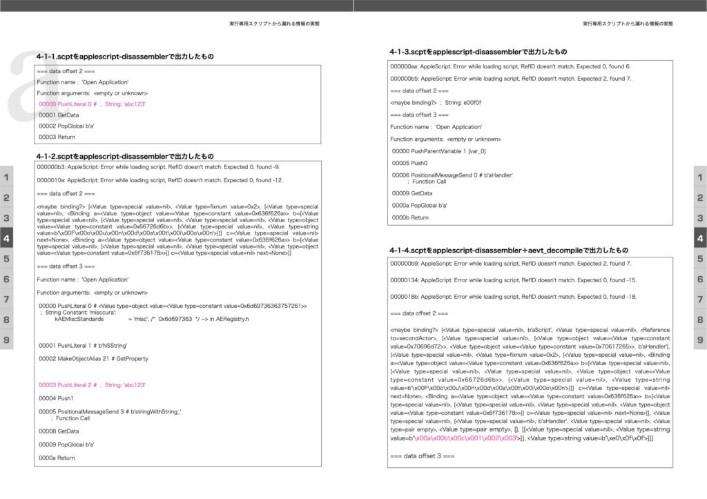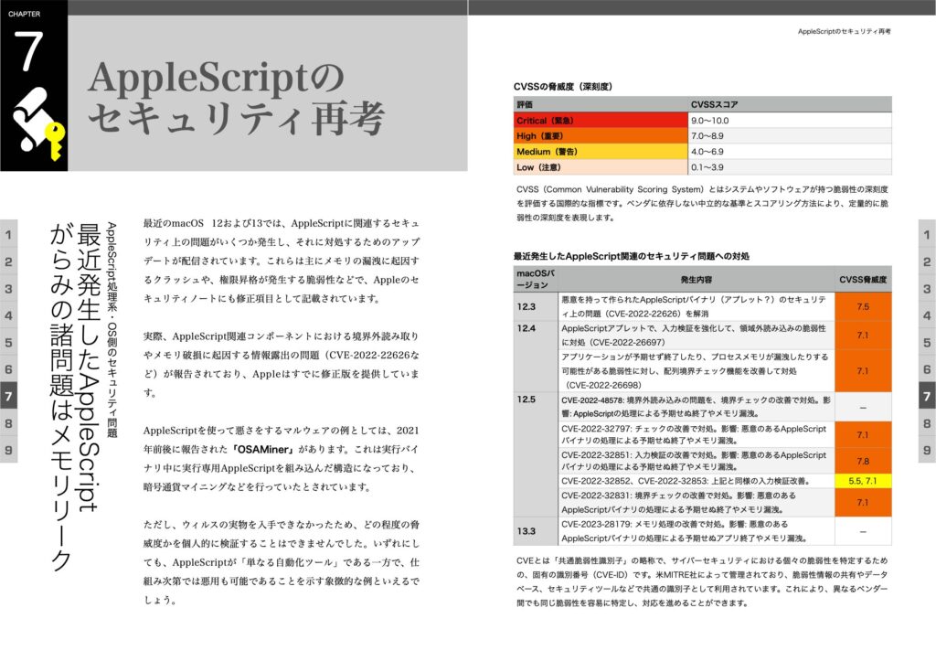 コマンド、記述方法、データ型から読み解く露出傾向/script objectによるダンプ対策が有効/「OSAMiner事件」から再考されたAppleScript環境におけるセキュリティ対策/コラム 本書作成のために作成・使用したAppleScript