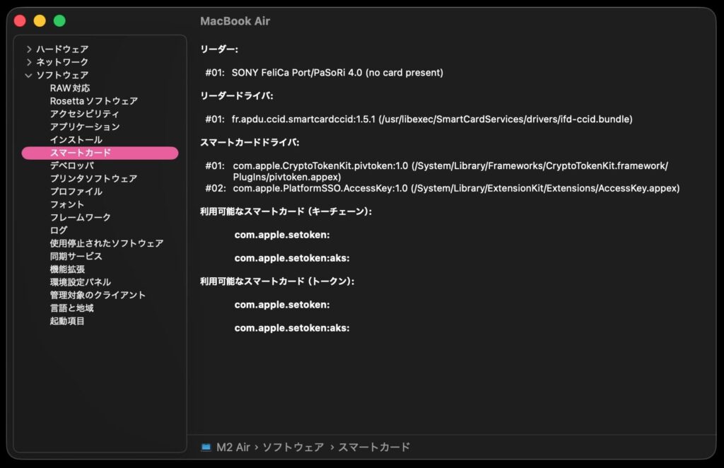 NFC関連の情報を取得するmacOS内のフレームワークは、CryptoTokenKitです。