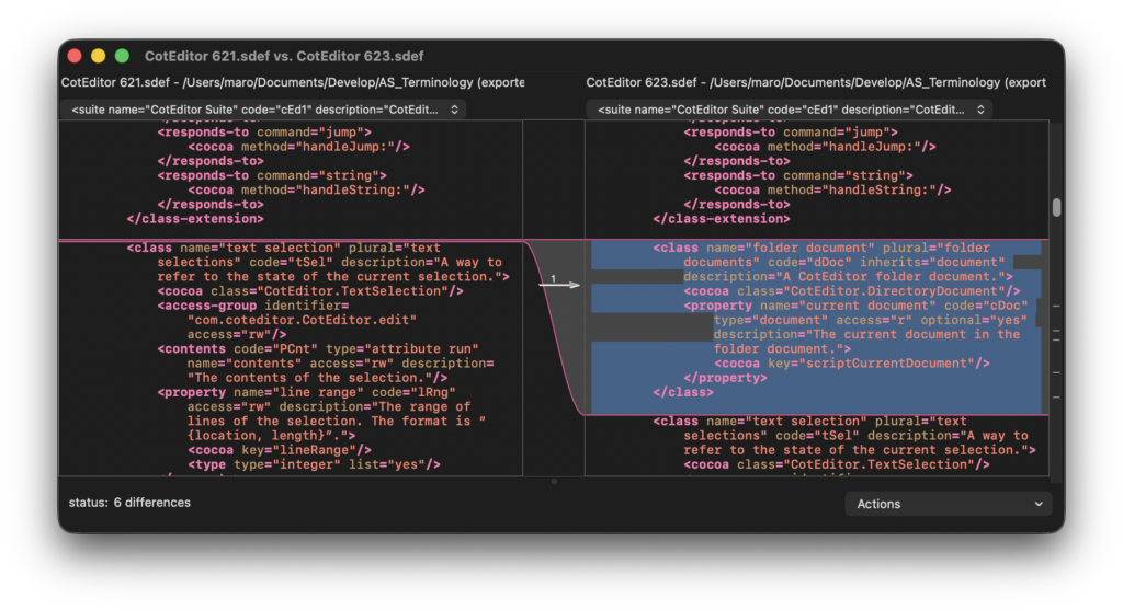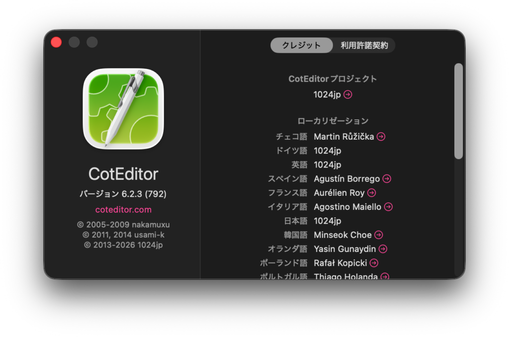 オープンソース開発されているフリーのテキストエディタ「CotEditor」v4.1.2において、AppleScript系の機能が追加されています。