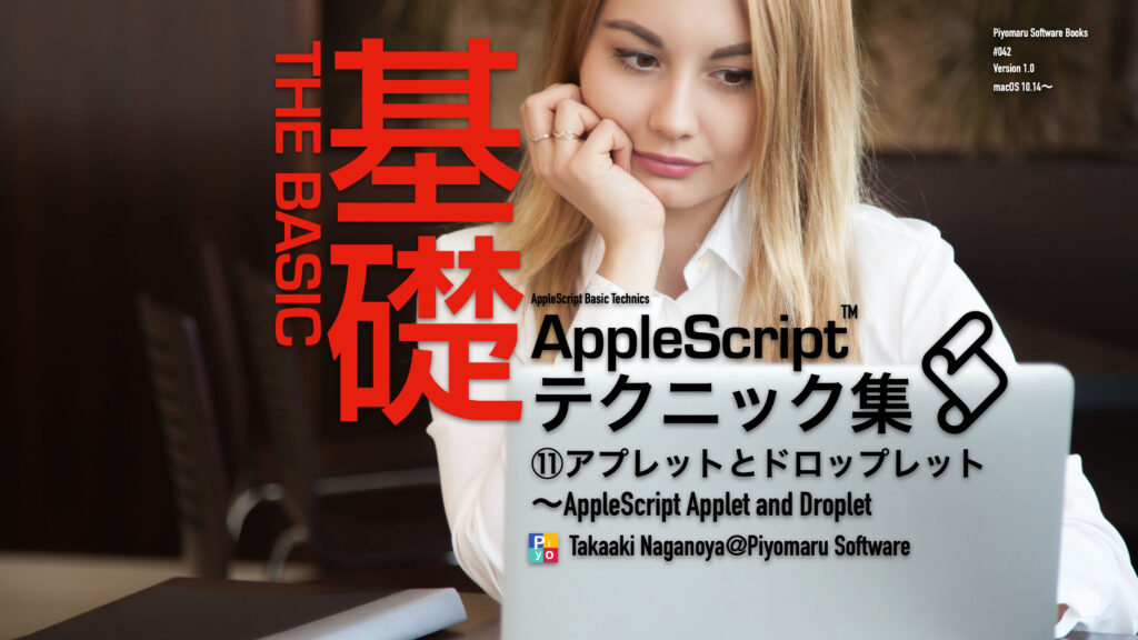 スクリプトエディタとScript Debuggerという2つの開発環境のちがい、アプレット、ドロップレット、Cocoa-AppleScriptアプレット、Script Debuggerの拡張ドロップレットなどなど。常駐タイプのアプレットに、タイマー割り込み処理のアプレット。アプレットのアイコンのカスタマイズに、アプレット内にAppleScriptライブラリを同梱する方法、Cocoa Frameworkを入れて呼び出す方法など、盛りだくさんな内容をお送りしています。