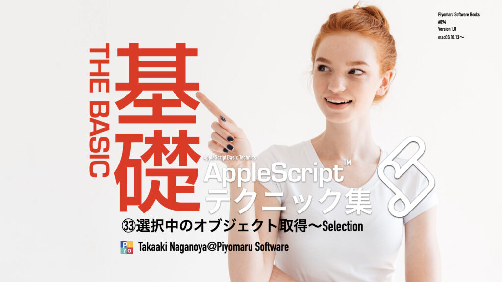 ある意味、AppleScriptの備える最強の機能といってもよいでしょう。本書で、この強力なselection機能について、その概要から実例、注意点にいたるまで幅広くご紹介いたします。
